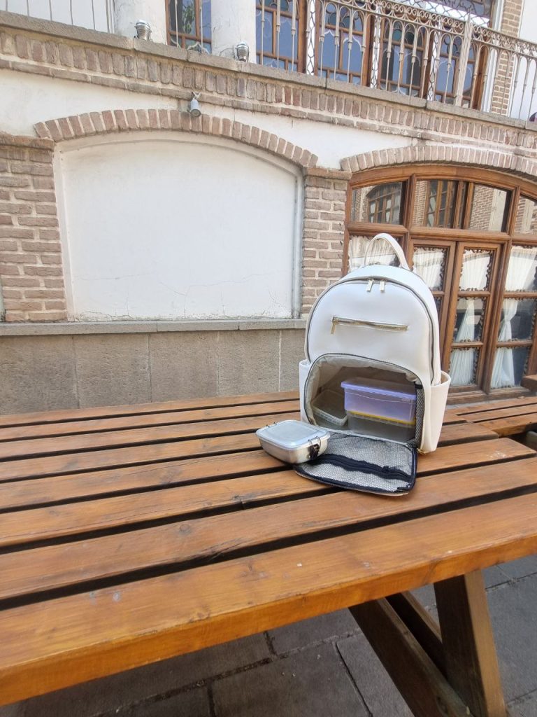 کیف دستی کرم رنگ با محفظه غذا آلمینیوم
